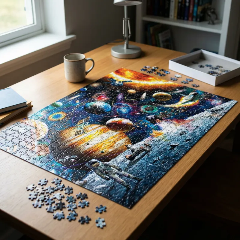 Rakastin kirkkaita avaruuskuvia! Veljeni halusi pitää valmiin palapelin seinällä, jotta kaikki näkisivät sen.