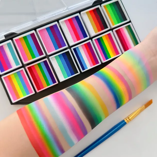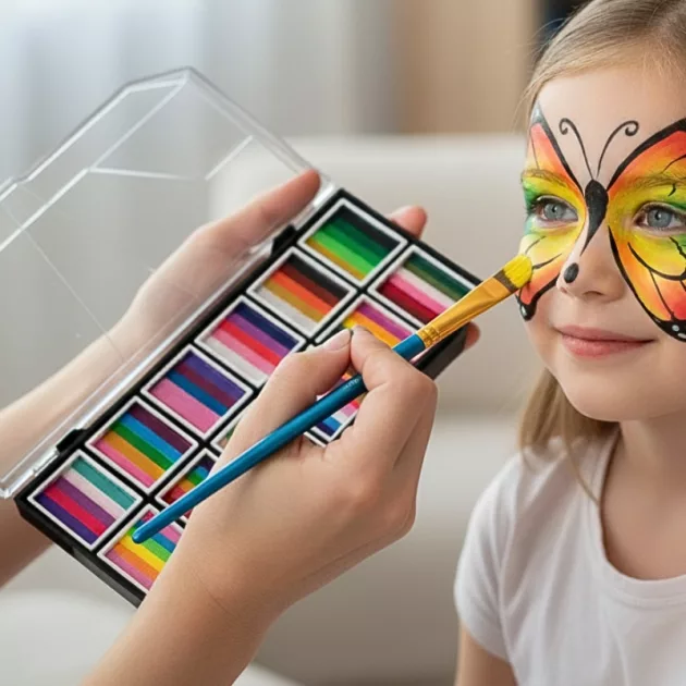 Niin monta väriä pienessä rasiassa! Täydellinen tiikeriksi ja keijuksi leikkimiseen. Helppo puhdistaa ennen nukkumaanmenoa.
