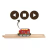 Todella helppo pienille käsille. Tyttäreni oppi ohjaamaan junia heti ja palaa yhä uudelleen junaleikkien pariin.