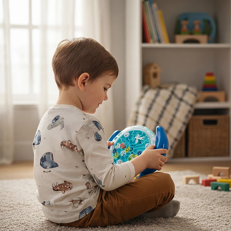 Tämä labyrinttipallo pitää taaperoni kädet kiireisinä pitkään. Se auttaa häntä rauhoittumaan ennen nukkumaanmenoa, mikä helpottaa sekä minua että häntä!