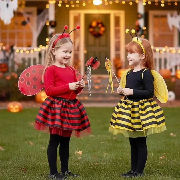 Lasten 4-osainen mehiläisasu Halloweeniksi ja juhliin