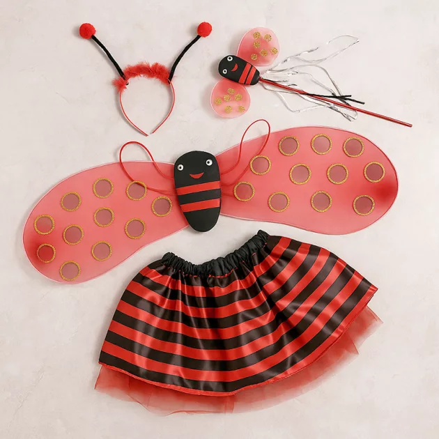 Tyttäreni oli niin innoissaan pukeutumisesta mehiläis-asuun ystävänsä syntymäpäiville. Siivet näyttivät upeilta ja hänen oli helppo juosta ja leikkiä.