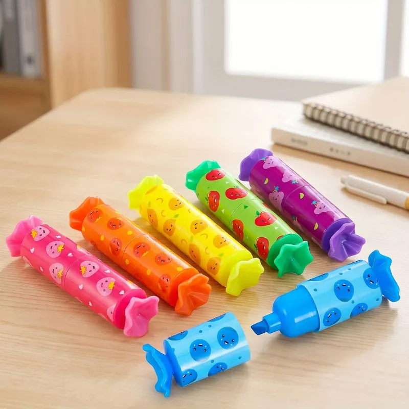 6 kpl värikäs kova karkkitekstikynä lapsille