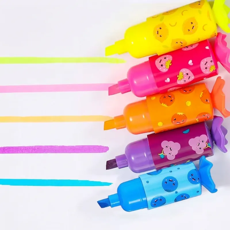 Kirkkaat, hedelmäiset kuosit muuttavat jokapäiväiset muistiinpanot pieniksi, iloisiksi juhlahetkiksi. Kätevät kaksipäiset kärjet auttavat lapsia vaihtamaan tehtävästä toiseen penko­matta penaalia. Tasainen musteen kulku pitää sivut siisteinä, jolloin kertaaminen tuntuu vähemmän stressaavalta. Hauskat muodot rohkaisevat harjoittelemaan säännöllisesti ja tukevat itsevarmuutta kouluprojekteissa.