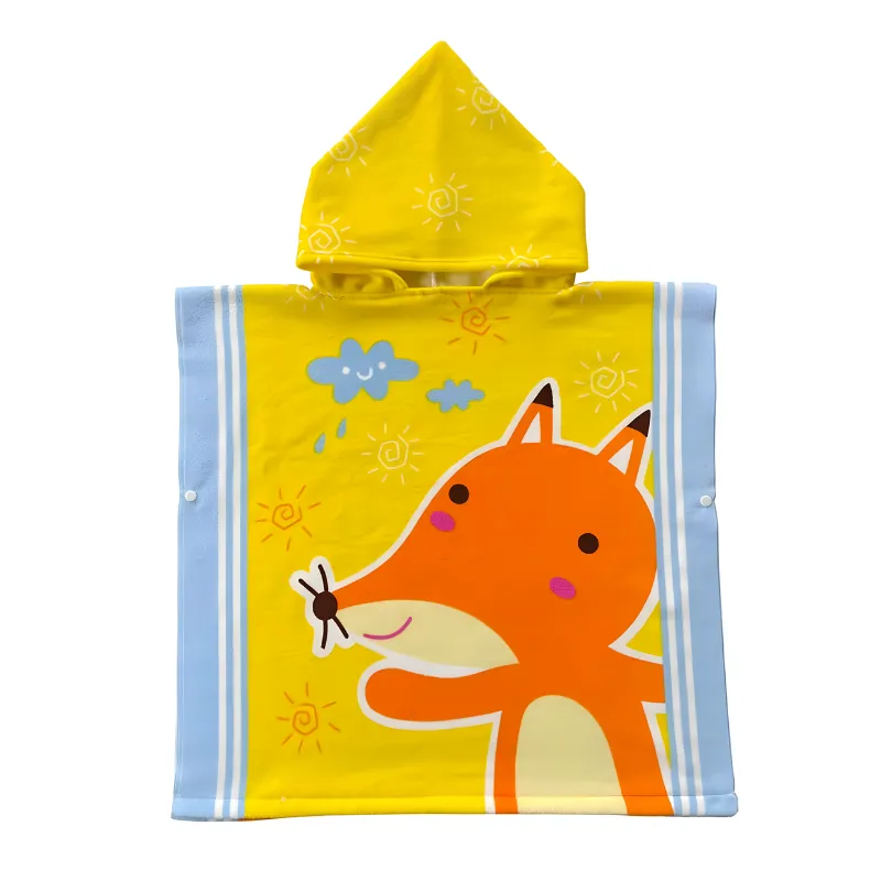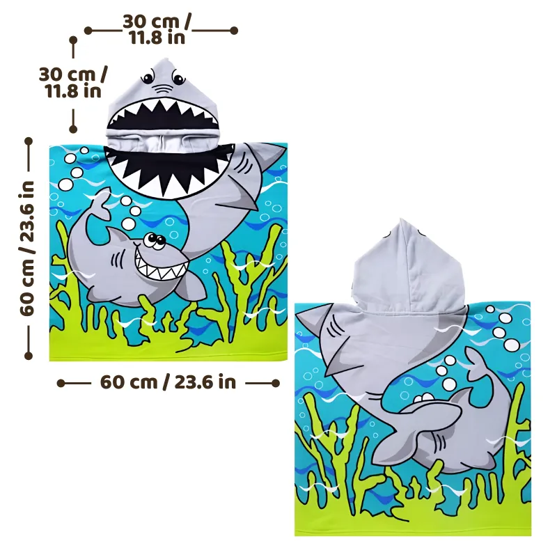 Loistava rannalla tai kylvyn jälkeen. Pyyhe kuivuu nopeasti ja sopii pitkään. Kolme- ja viisivuotiaani molemmat rakastavat ponchojaan!