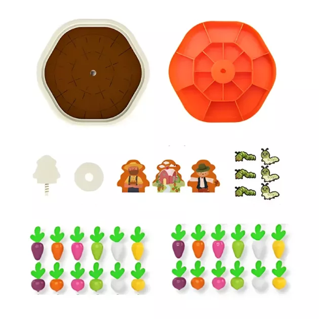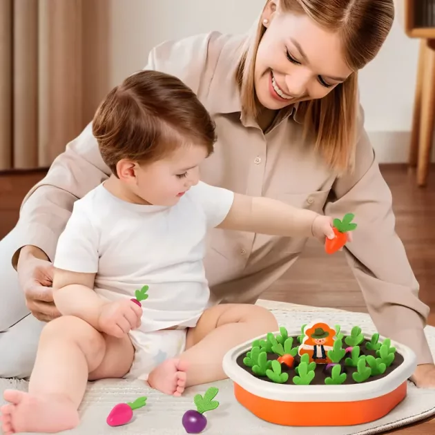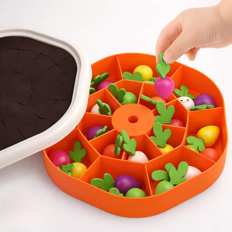 Hauska lelu siskontytölleni. Hän kikattaa joka kerta kun yrittää sovittaa oikean kokoista porkkanaa. Hyvä tapa oppia värejä ja koordinaatiota.