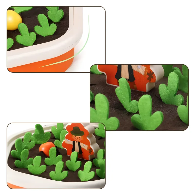 Tyttäreni haluaa leikkiä porkkanapelillä joka päivä. Kirkkaat värit ja suloiset muodot pitävät hänet innostuneena, kun näen hänen pohtivan jokaista haastetta.