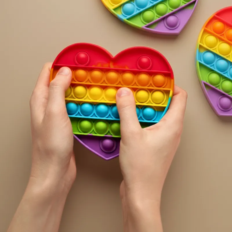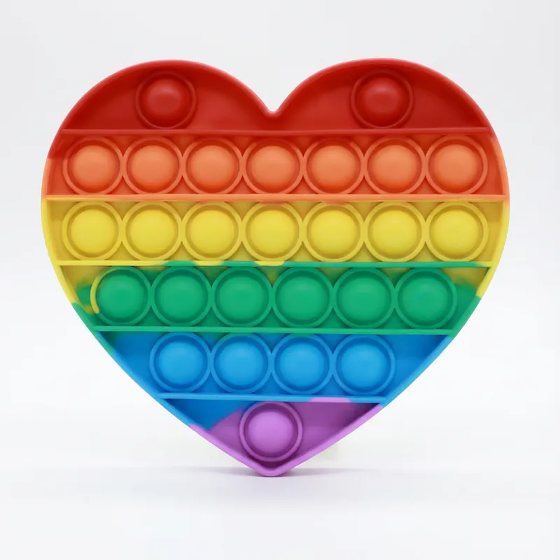 Värikäs sydämenmuotoinen Pop It -fidget-lelu stressin lievitykseen