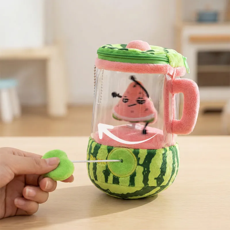 Tämän pehmolelun hedelmänaamat ovat hulvattomia. Kaksoseni vetävät vuorotellen narusta ja saavat sen pyörimään, sitten he nauravat katketakseen ja leikkivät ravintolaa yhdessä.