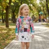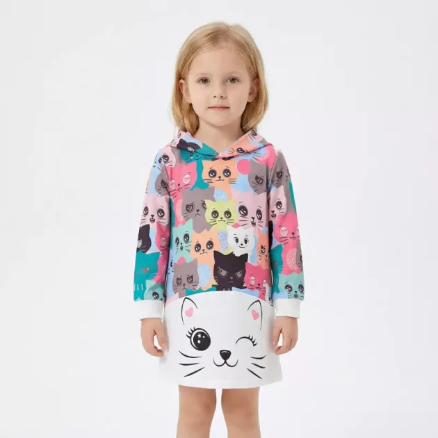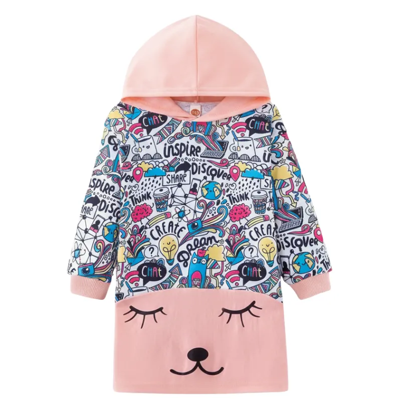 Tyttäreni rakastaa uutta hupparimekkoaan. Eläinkuosi tekee aamuisesta pukeutumisesta hauskaa ja kangas on todella pehmeä.