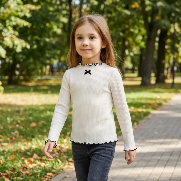 Tyttäreni rakastaa tätä paitaa! Se on niin pehmeä ja pitää hänet lämpimänä koulumatkalla. Röyhelöt tekevät siitä erityisen söpön, ja hän valitsee sen aina.