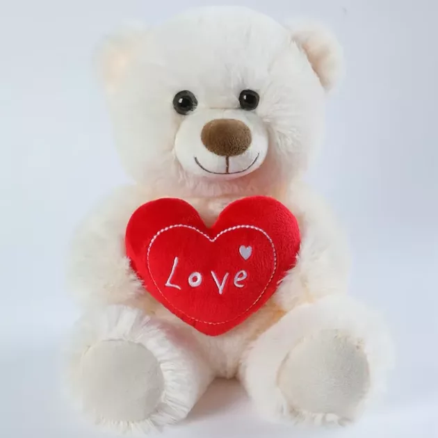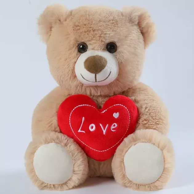 Söpö pehmolelu punaisella sydämellä