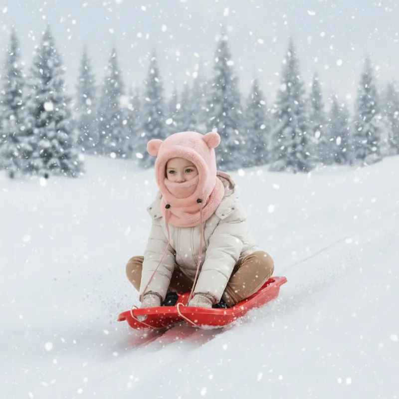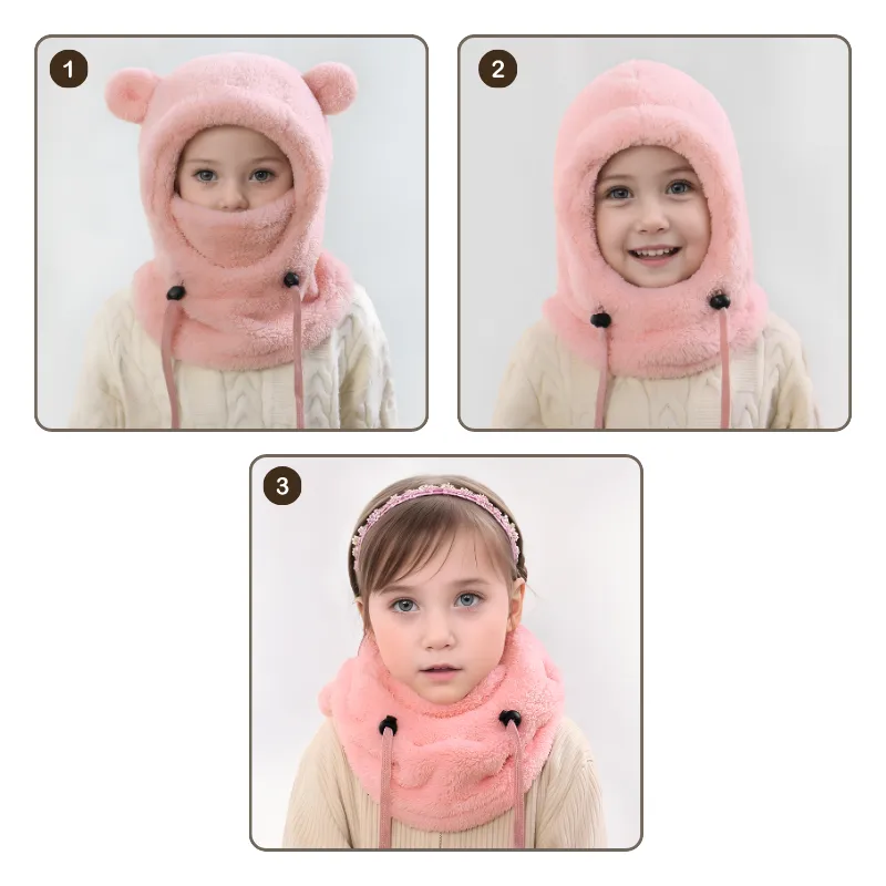 Söpö lämmin balaklava-lakki karhunkorvilla lapsille