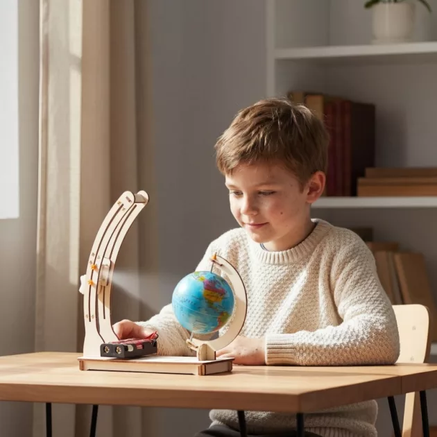 Tämän kokoaminen oli todella hauskaa. Nyt tajuan, miksi planeetta pyörii ja miksi meillä on aamut ja yöt.