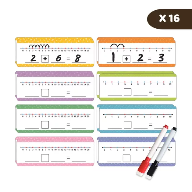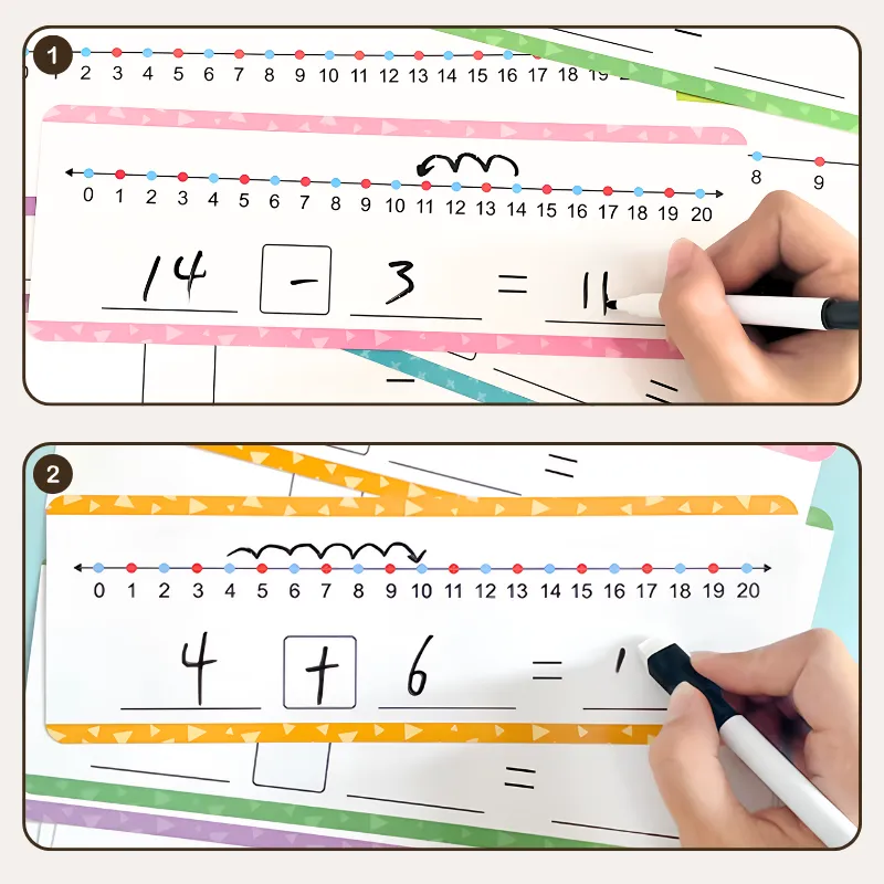 Helppoa harjoittelua - Lapset ratkaisevat laskuja uudelleenkäytettävillä pinnoilla, jotka on nopea pyyhkiä puhtaiksi. Virheistä tulee oppimisen hetkiä ilman hukkaan menevää paperiroskaa.