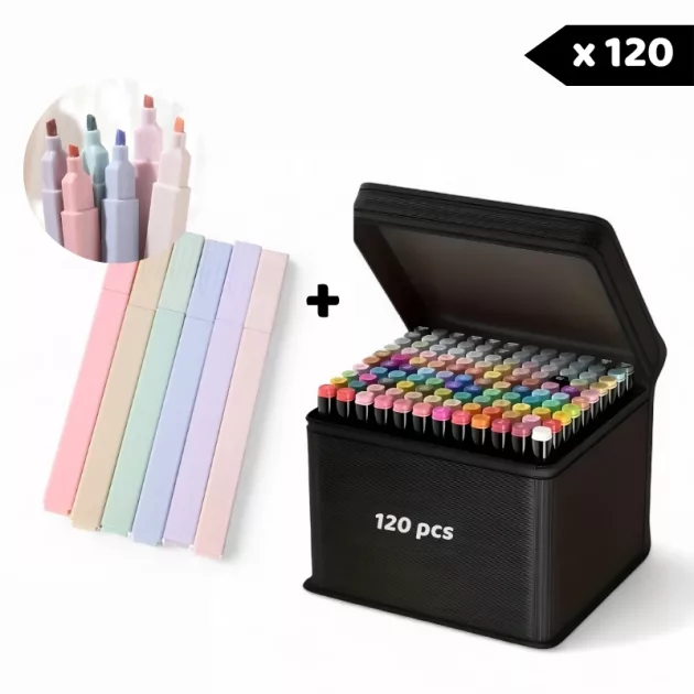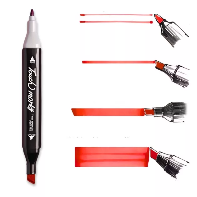 Kaksipuolisen kärjen monipuolisuus - Vaihda helposti leveiden viivojen ja hienojen yksityiskohtien välillä. Et tarvitse ylimääräisiä tarvikkeita, koska jokainen tussi sopii kaikkiin tyyleihin.