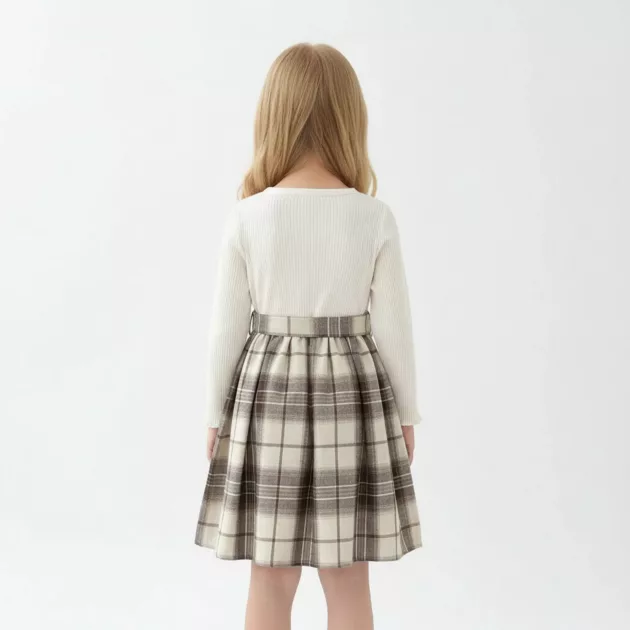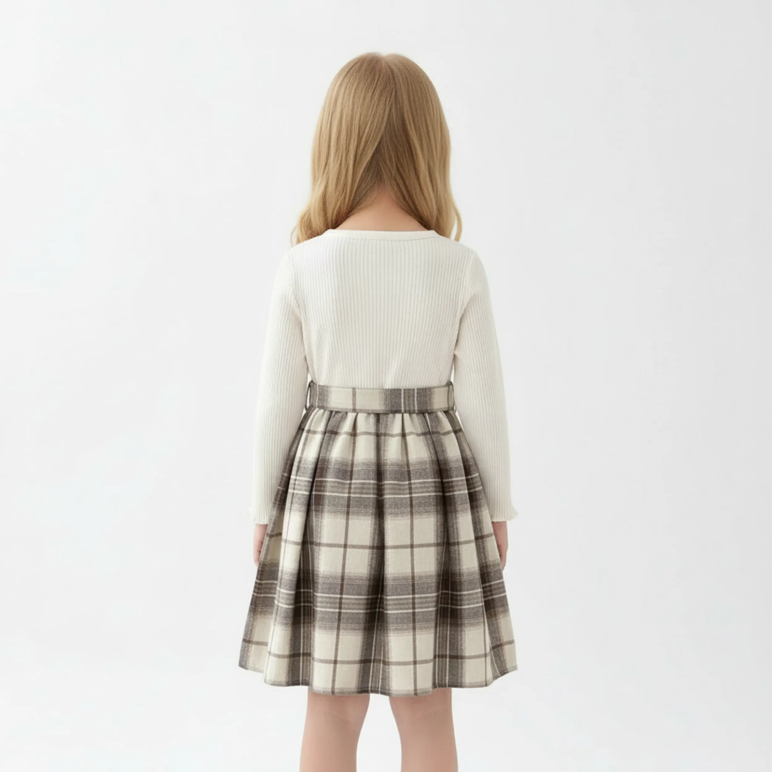 Lasten Feikki Kaksiosainen Pitkähihainen Ruudullinen Mekko Baretilla