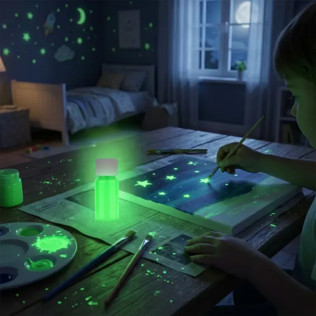 Hohtavat luomukset - Maalaukset ja askartelut säteilevät himmeässä valossa tuntikausia. Jokainen siveltimenveto muuttuu eloisaksi, hohtavaksi seikkailuksi.