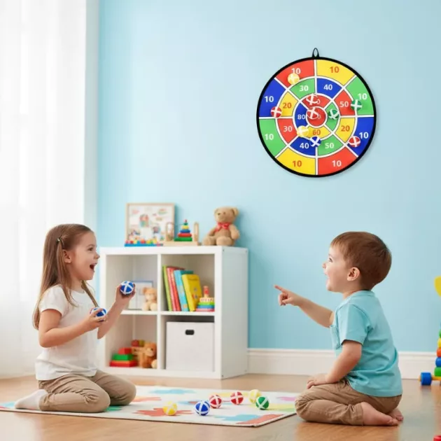 Kirkkaat värit kiinnittävät huomion ja innostavat helposti luovaan kilpailuun. Jokainen heitto kehittää tarkkuutta ja silmä-käsi-koordinaatiota nopeasti. Yksinkertainen asennus mahdollistaa aktiivisen leikin missä tahansa, kotona tai ulkona. Vanhemmat arvostavat turvallista muotoilua ja helppoa siivousta leikin jälkeen.