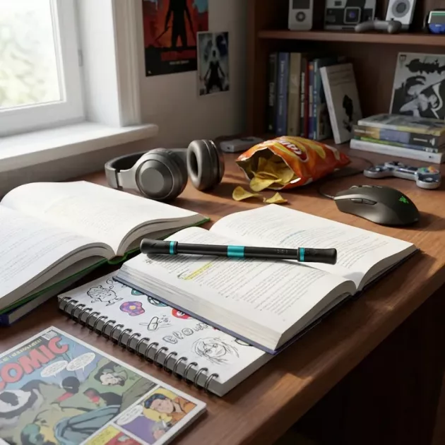 Häiriinnyn helposti, mutta kun pyöritän tätä kynää, saan oikeasti luettua loppuun. Se on loistava levottomille käsille ja pitää minut keskittyneenä ilman ääntä.