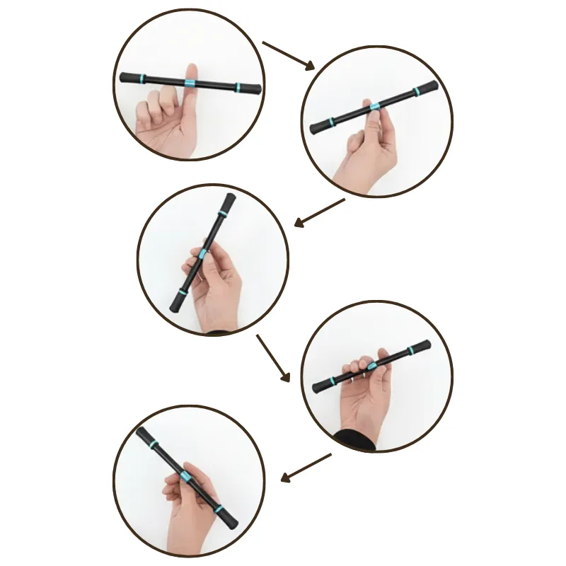 Tunnen joskus levottomuutta, mutta tämän kynän pyörittäminen antaa käsilleni tekemistä. Sopii hyvin, kun on tylsää tai pitää istua paikallaan.