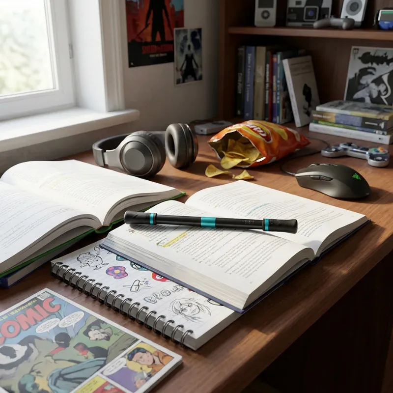 Häiriinnyn helposti, mutta kun pyöritän tätä kynää, saan oikeasti luettua loppuun. Se on loistava levottomille käsille ja pitää minut keskittyneenä ilman ääntä.