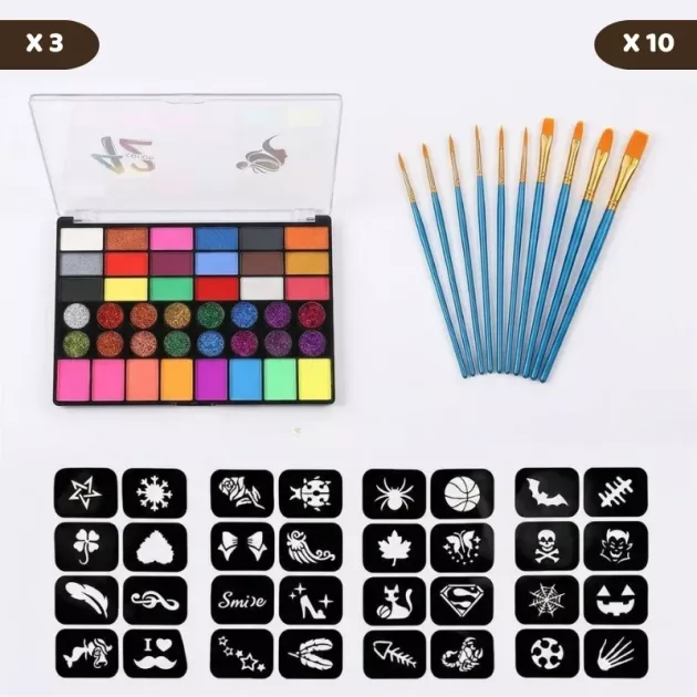 Lasten UV-hohtava kasvoväri- ja vartalomaalipaletti