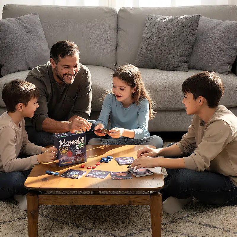 Hanabin pelaaminen lasteni kanssa teki illoistamme niin hauskoja. Naureskelimme, jaoimme ideoita ja teimme yhteistyötä voittaaksemme joka kerta.