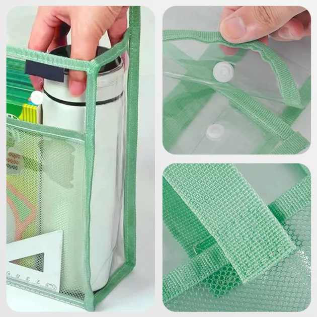 Ei enää kadonneita lappuja tai sotkuisia laukkuja aamuisin. Lapset näkevät jokaisen kirjan tai paperin helposti läpinäkyvän muotoilun ansiosta. Tarvikkeiden kantaminen tuntuu yksinkertaiselta ja mukavalta käsille.