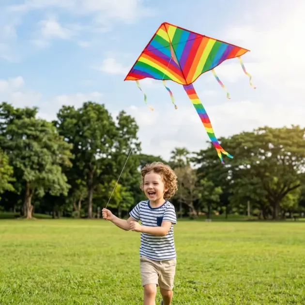 Värikkäät raidat tanssivat puistojen yllä ja muuttavat tavalliset kävelyt taianomaisiksi. Lapset tuntevat ylpeyttä ohjatessaan jotain kaunista korkealla taivaalla. Vahva kangas kestää tuulisetkin päivät, jolloin leikki sujuu tasaisesti ja huolettomasti.