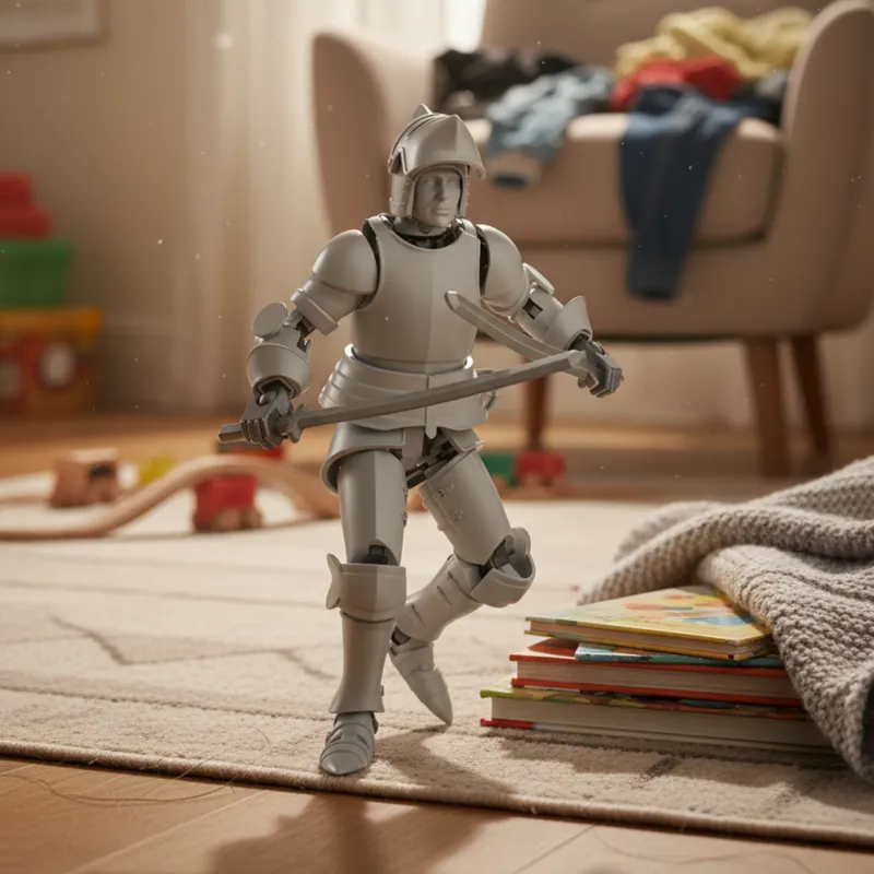 Käytin ritaria päähenkilönä stop motion -videoissani. Sileät nivelet mahdollistavat tosi hienot toimintakohtaukset.