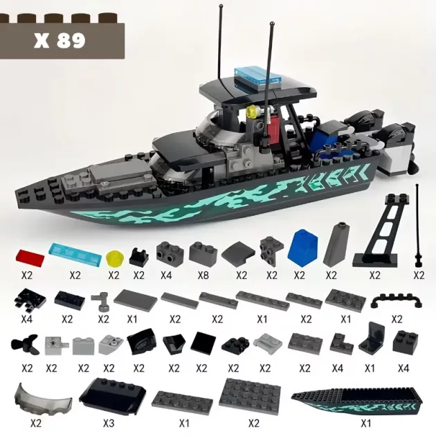 Poliisivene Rakennuspalikat Laivaleikkisetti Lapsille