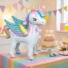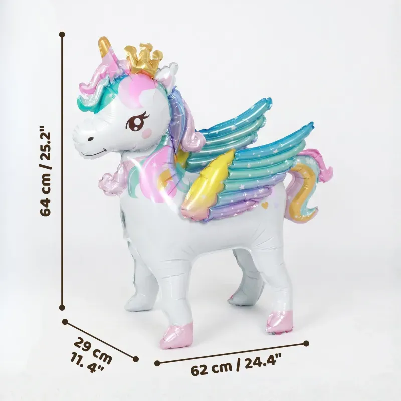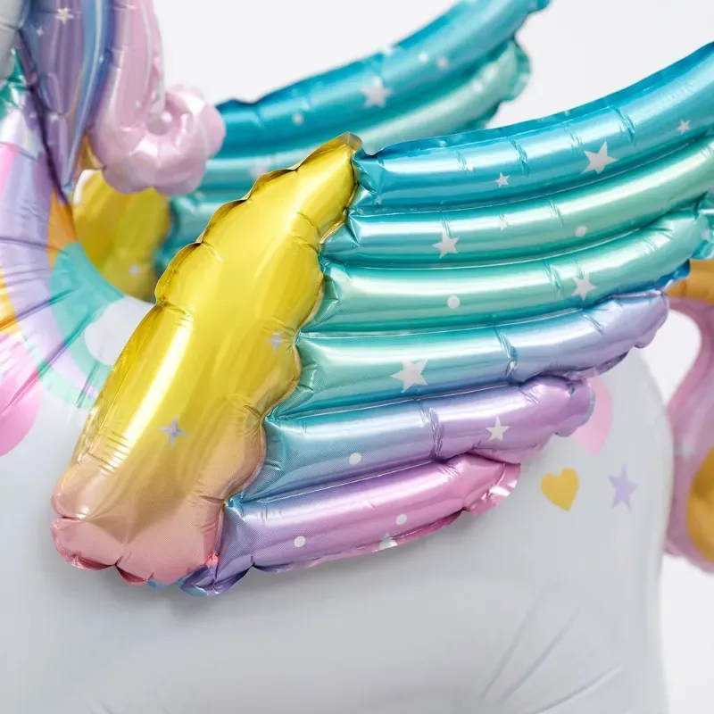 Tykkäsin siitä, että en tarvinnut heliumia. Täytin vain yksisarvisen, laitoin sen lattialle ja se pysyi pystyssä pelien, tanssin ja kuvaushetken ajan.