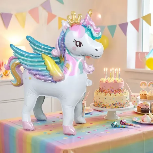 Kirkkaat värit ja kevyt kimalle muuttavat minkä tahansa nurkan satumaaksi. Seisova malli tekee asettelusta helppoa kakku- tai lahjapöydän viereen. Vahva folio säilyttää muotonsa kauniisti, joten juhlat pysyvät kuvankauniina. Vanhemmat nauttivat huolettomasta somistamisesta ja lapset tuntevat olonsa aidosti erityisiksi.