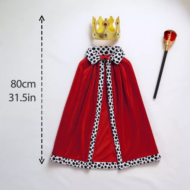Mielikuvitus kasvaa, kun pienet pukeutuvat tähän samettiviittaan. Jokainen yksityiskohta innostaa luovaan leikkiin, kirkkaan punaisesta kankaasta kultakruunuun. Pukeutuminen helpottuu, ja jokaisesta tapahtumasta tulee taianomainen ja stressitön. Katso, kuinka lapsesi hymyilee muuttuessaan hetkessä.