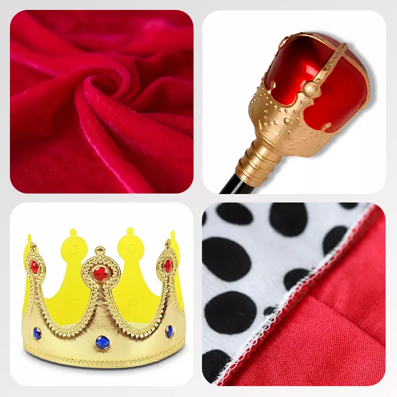 Mielikuvitus kasvaa, kun pienet pukeutuvat tähän samettiviittaan. Jokainen yksityiskohta innostaa luovaan leikkiin, kirkkaan punaisesta kankaasta kultakruunuun. Pukeutuminen helpottuu, ja jokaisesta tapahtumasta tulee taianomainen ja stressitön. Katso, kuinka lapsesi hymyilee muuttuessaan hetkessä.