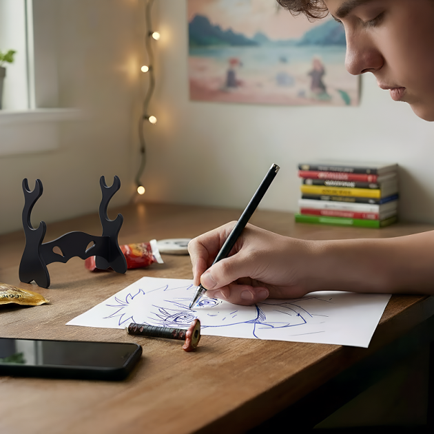 Katana-kynäteline pitää tyttäreni työpöydän todella siistinä. Hän haluaa pitää erityisen kynänsä esillä vihkojensa vieressä.