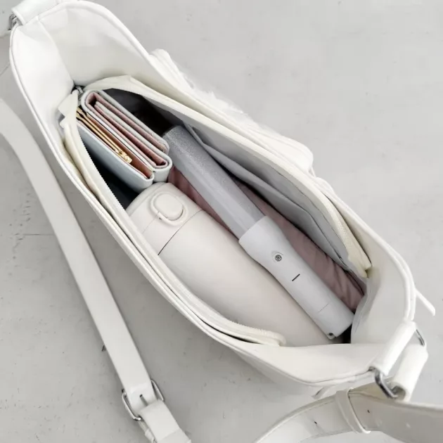 Vetoketju toimii sulavasti ja kaikki pysyy paikoillaan, vaikka juoksen välitunnilla. Löydän huulirasvani heti.