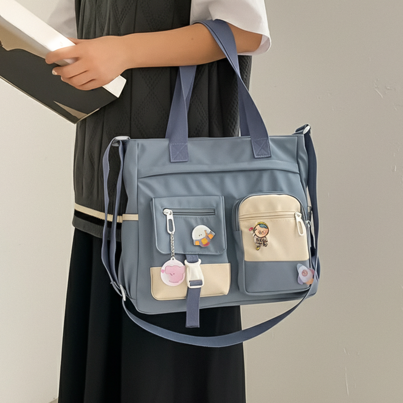 Olen tyytyväinen olkalaukkuun, koska en enää ikinä hukkaa tavaroitani. Värit ovat kirkkaat ja saan kavereilta kehuja.