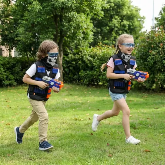 Leikimme tuntikausia! Liivin ansiosta joukkueet oli helppo muodostaa, ja veljeni lakkasi valittamasta hävinneistä nuolista. Nyt tämä on meidän vakiovaruste ulkoleikkeihin.