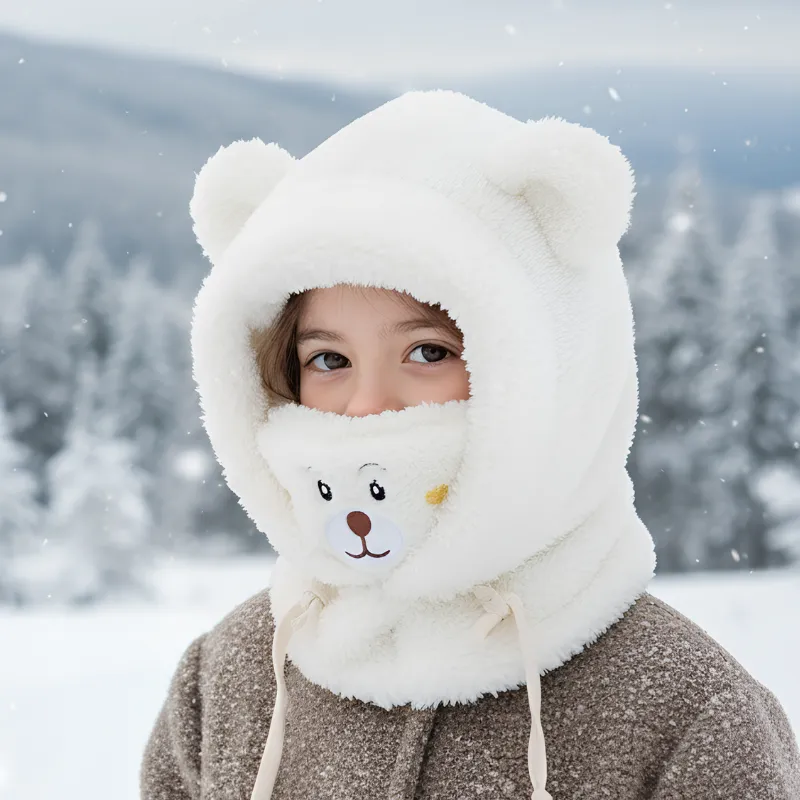 Tyttäreni rakastaa karhuhattuaan! Se pitää hänet lämpimänä viileillä puistoreissuilla ja suojaa myös hänen poskiaan todella hyvin.