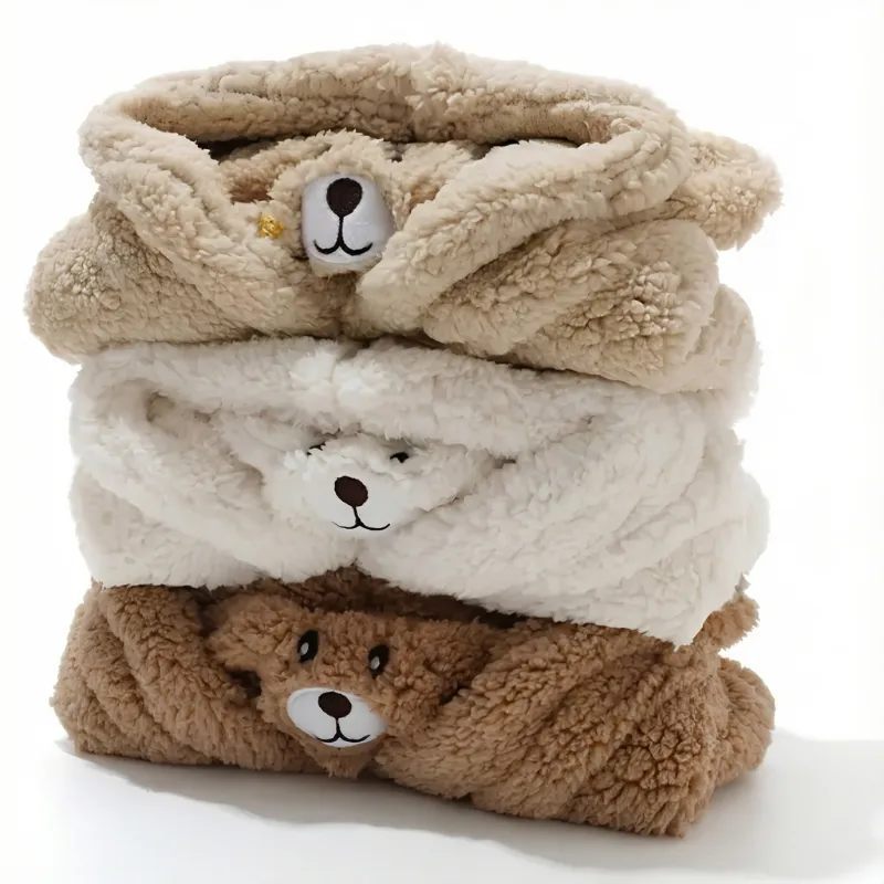 Pehmeä karhuhattu tuntuu hyvältä sekä sisältä että ulkoa. Poikani rakastaa pieniä korvia päällä ja se mahtuu mukavasti takin alle.
