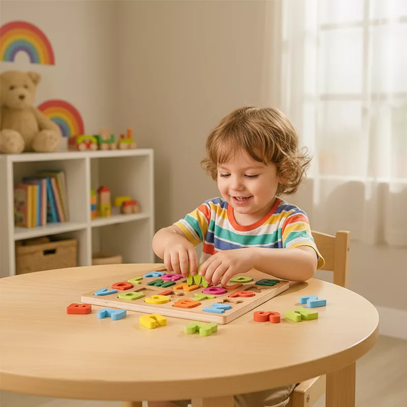 Tyttäreni pyytää tätä joka aamu. Hän tunnistaa kirjaimet varmemmin ja palapeli kestää rajuissakin leikeissä.